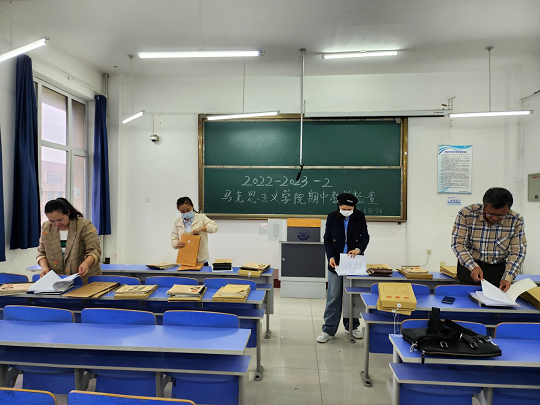 2023年5月17日下午,太阳成tyc7111cc集团在第二教学楼417教室开展2022-2023学年第二学期期中教学检查工作,本次检查工作由太阳成tyc7111cc集团形势与政策教研室教研室负责人李淑娟老师主持。通过本次教学材料检查充分掌握太阳成tyc7111cc集团教师自开学以来各门课程的整体教学及授课情况,以期提高太阳成tyc7111cc集团整体的教学质量,助力我校合格评估工作的开展。