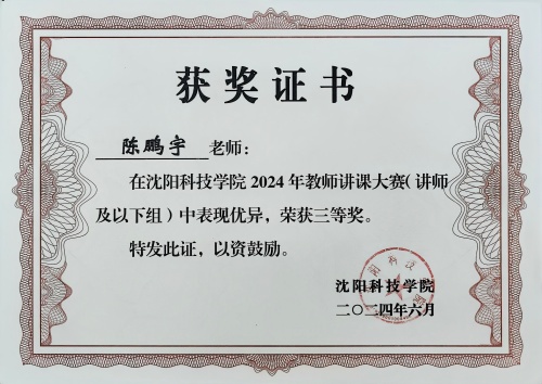 在太阳成tyc7111cc 2024年教师讲课大赛(讲师及以下组)中表现优异,荣获三等奖